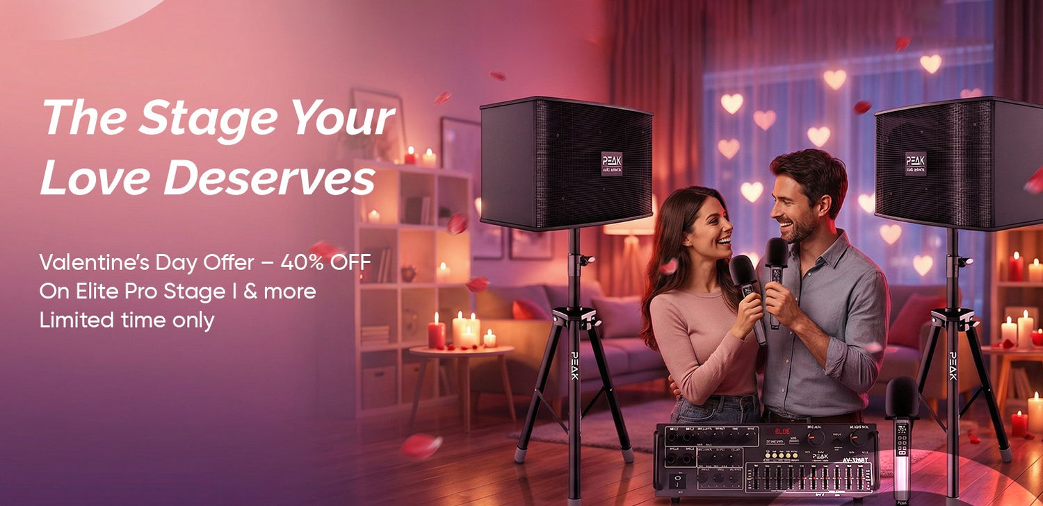 With 30 years of hands-on experience in crafting professional sound setups for live concerts and studio recordings with the best in the business, we’re not just another store. We’re your go-to audio experts. Every piece of PEAK Karaoke equipment is a result of our expertise and dedication to giving you the ultimate singing experience – right at home.