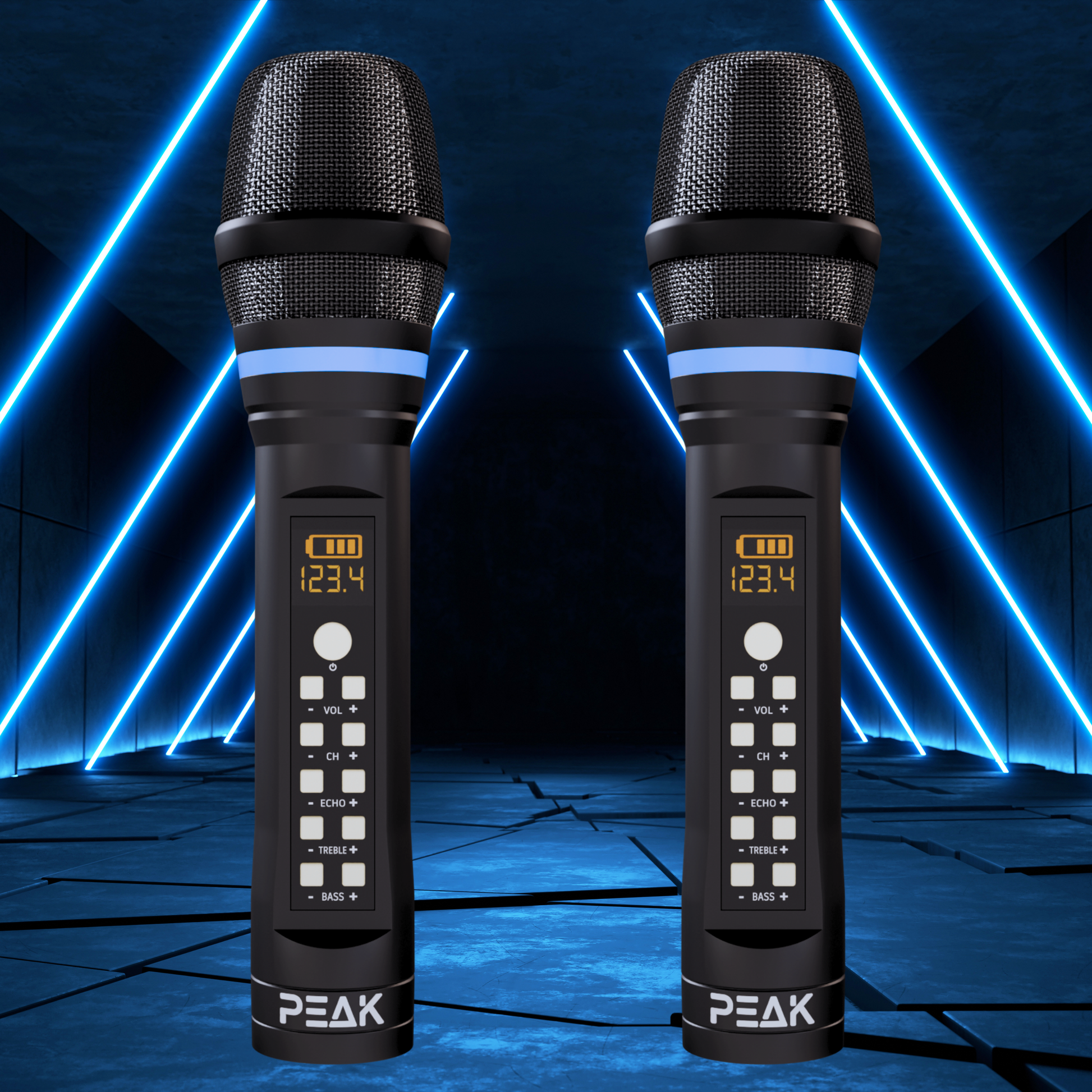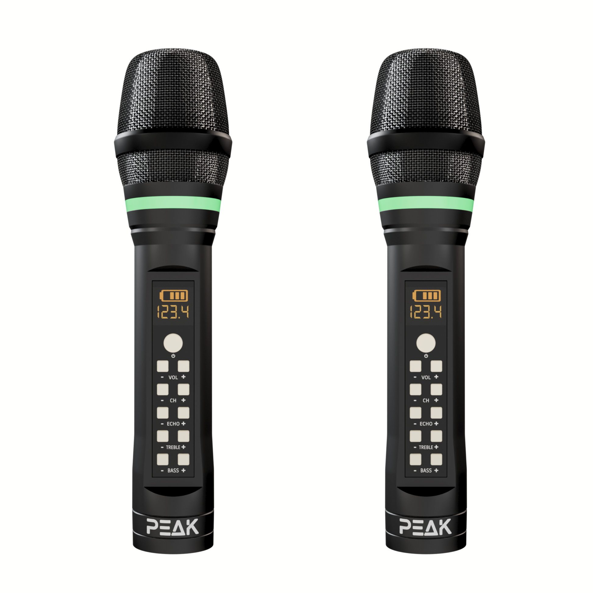 A sleek green LED ring light wraps each mic, delivering a modern stage aesthetic while providing instant visual feedback during performance. Housed in a solid all-metal casing, these microphones are built to withstand the rigors of the stage while maintaining a refined, studio-grade feel in the hand.