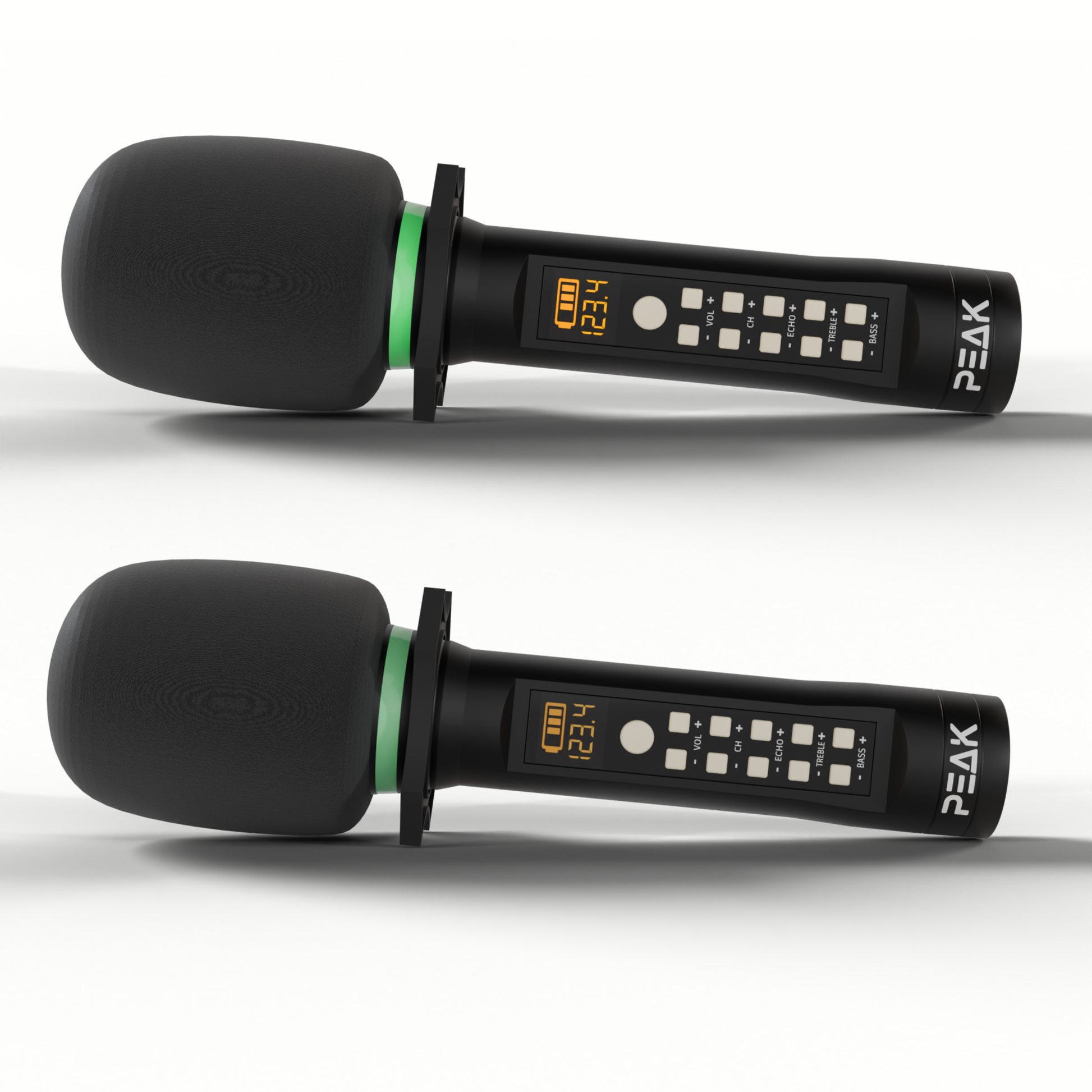 Perform like a star with four PK-MIC-090 rechargeable wireless microphones. Each offers up to 10 hours of battery life, Harmony Receiver with a 150 ft range, and durable build. Convenient echo and volume controls let every singer customize their sound on the fly—perfect for duets, groups, or parties.