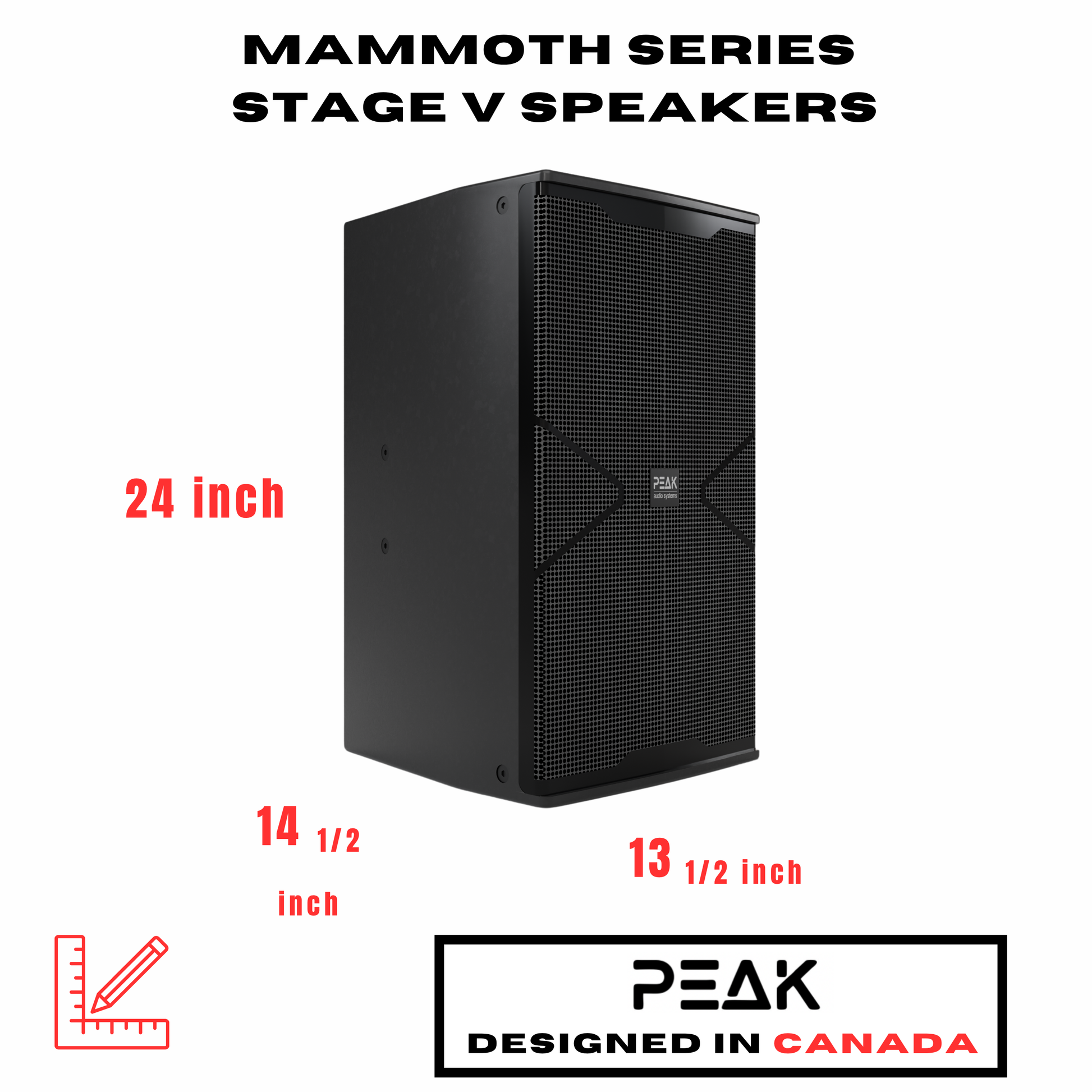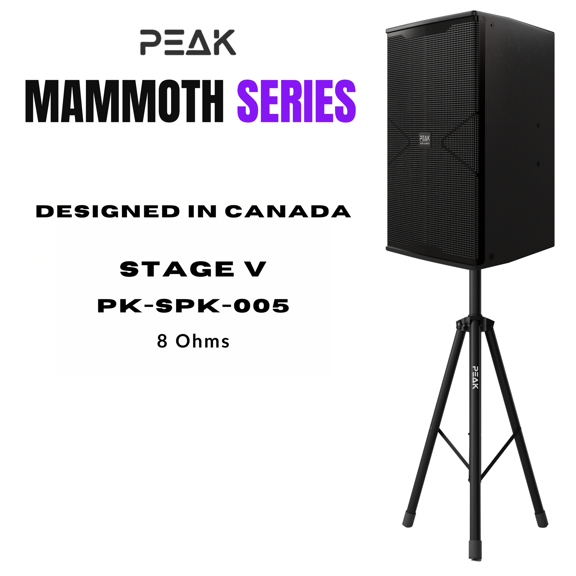 Two MAMMOTH STAGE V PEAK 2-Way Speakers, 12" woofers for tight bass and crystal clear mids & highs for the vocals to shine through, Premium Speaker Wire. Custom Concorde PEAK PK-STD-003 Stands Included for appropriate bass isolation. |